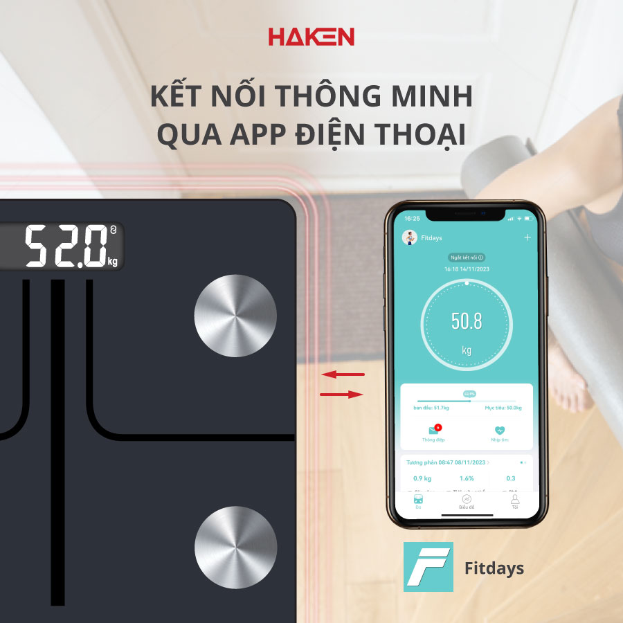 Kết nối thông mình qua app FITDAYS, vô cùng đơn giản, dễ sử dụng với tất cả mọi người. Thông qua app FITDAYS để theo dõi sự biến đổi cơ thể của mình theo từng ngày, từng tuần, từng tháng...Từ đó, giúp bạn có dữ liệu để xây dựng một chế độ sống lành mạnh, cân bằng và khoa học nhất